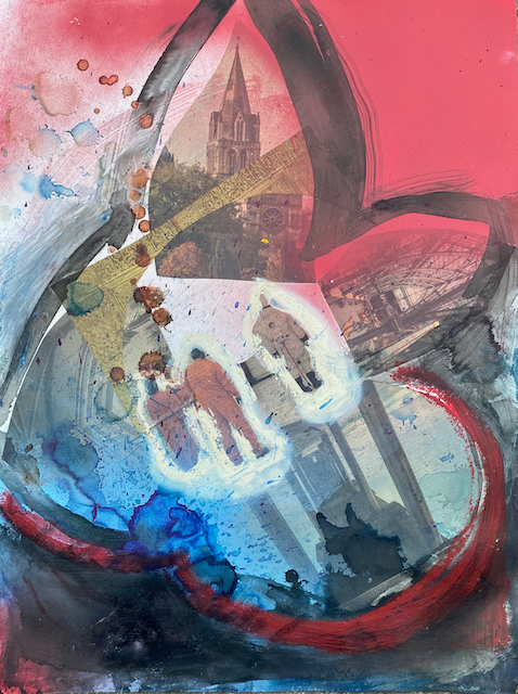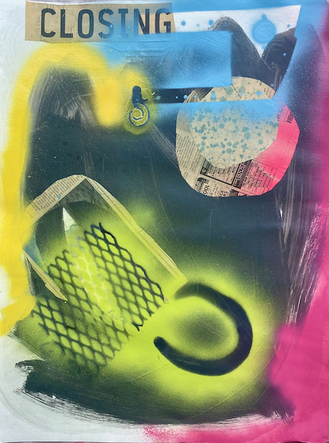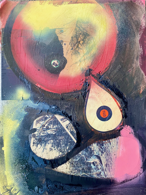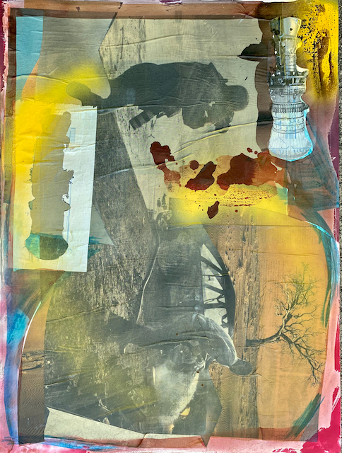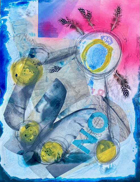 These blended media works are pre-COVID. I made them in very sizable studio space so the scale of the work is much larger than I was accustomed to from working in a small in-home space previously. They were made at a time of great transition, both personally and globally.